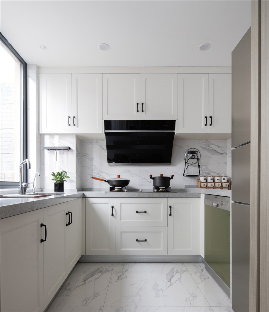 廚房的門做了弱化設(shè)計 一推進去即是 視野開闊的開放式廚房