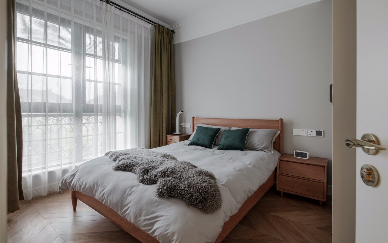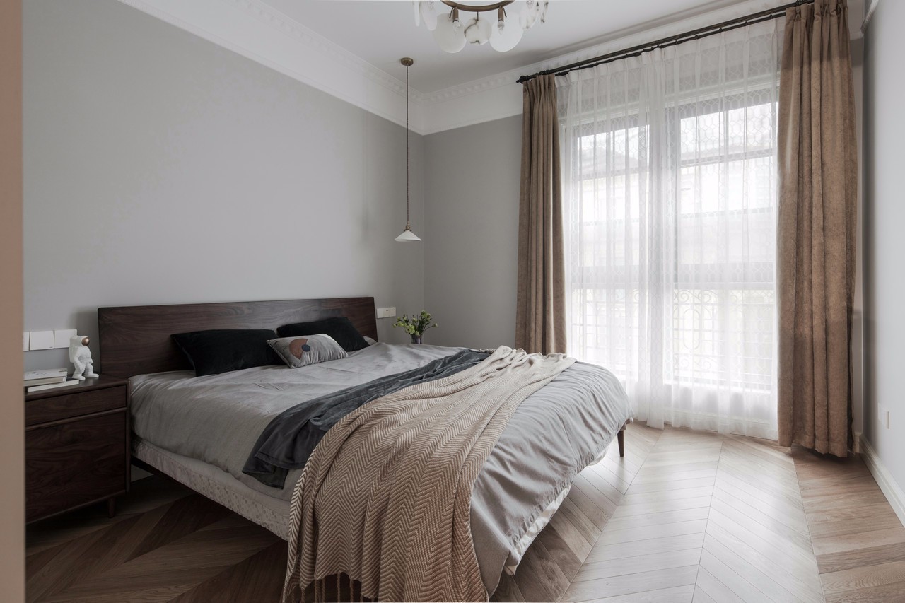 房主比較偏愛灰色調(diào),從床品的選擇可以看出來,灰色代表低調(diào),格子代表嚴(yán)謹(jǐn),而藍(lán)色靠枕一點(diǎn)綴,內(nèi)心的熱情與奔放又不言而喻。大體可以看出男主人是一個悶騷的文藝暖男。