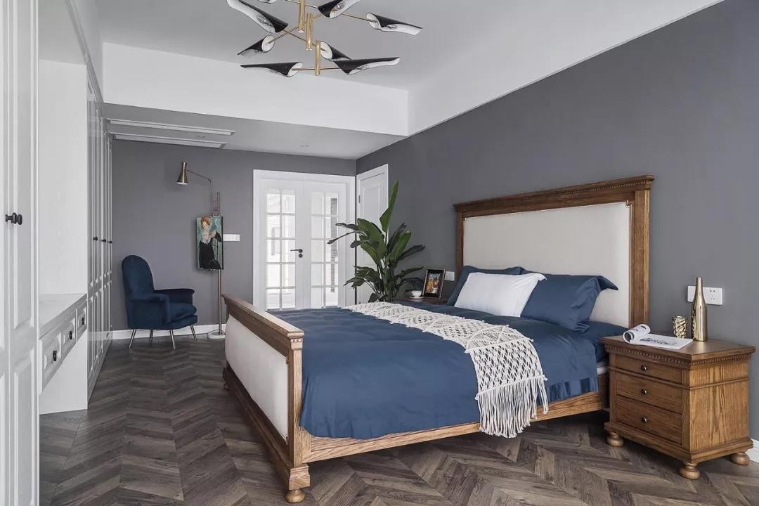 電視墻的設(shè)計也很有特色,在偏左的地方掛上一塊黑白相隔的毯子,在深灰色的電視墻上做了一個視覺沖擊的一個設(shè)計,讓電視墻看起來不單調(diào),有個性。